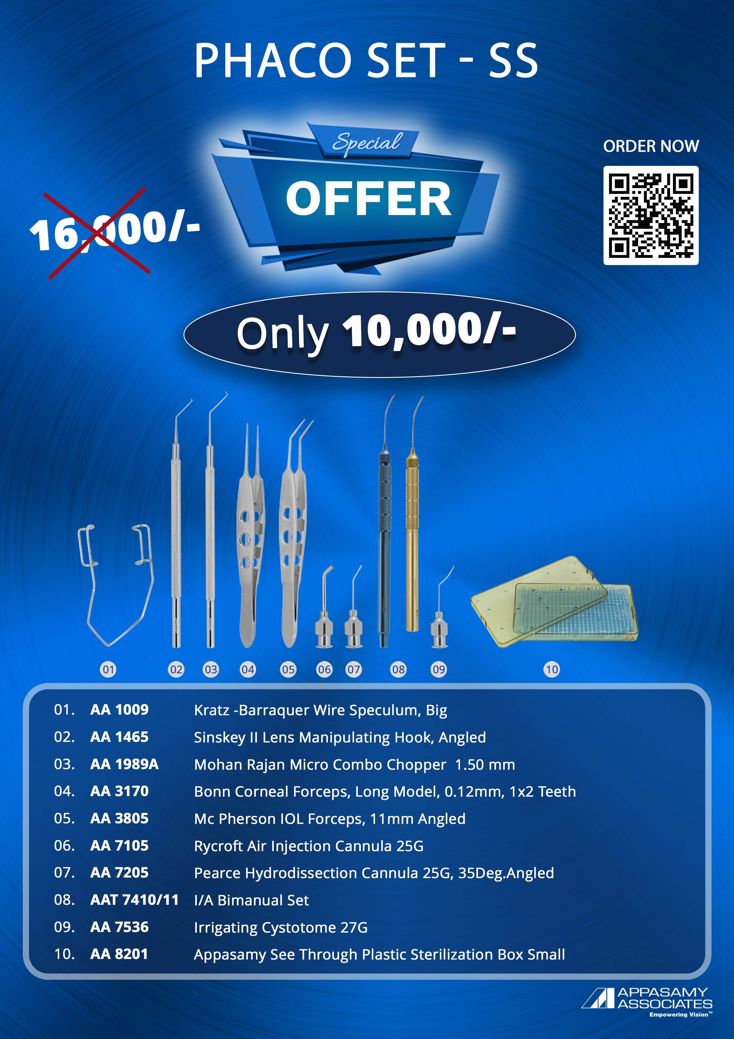 Appasamy Associates remained as the Pioneerfor several cutting-edge innovations worldwide in Ophthalmology. Appasamy has avast array of capabilities required to take up manufacturing to the next levelon Eye Surgical Products. Our dedicated services will provide the common manwith easier and more affordable access to the best vision care servicespossible.
